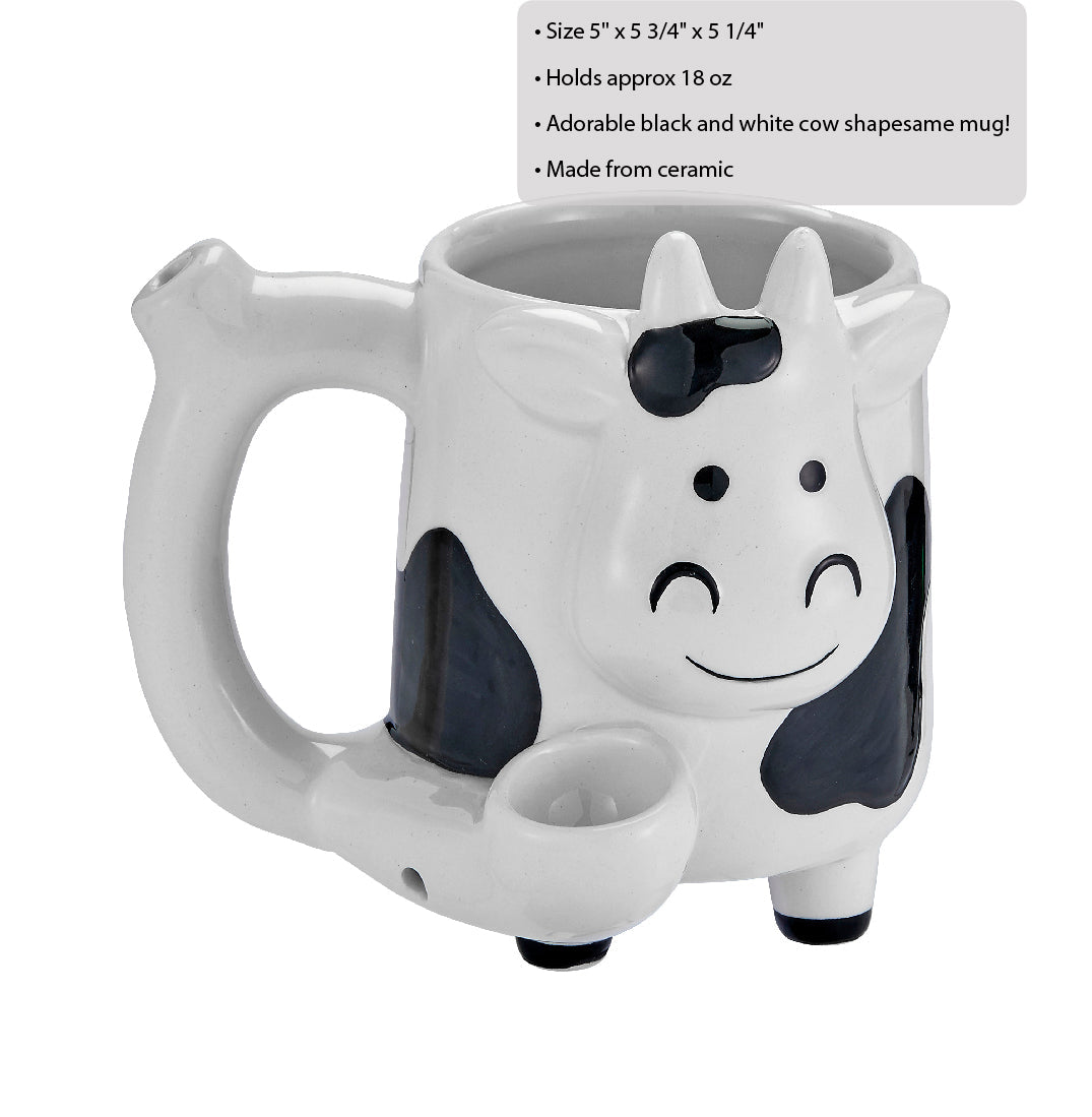 Cow Mug - Roast & Toast A cup of warm milk before bed never tasted this good! The Cow Mug is the perfect adult gift for a fun-loving friend who enjoys a 'smoke' every now and then. This trendy ceramic mug features an adorable black and white cow shape, complete...